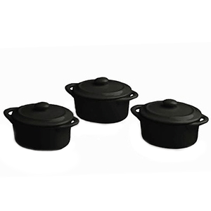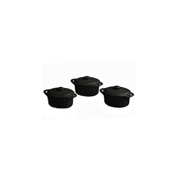Набор из 3-х кастрюль для запекания Mignon с крышкой, фарфор, 60мл, D=7см, черный, Tognana